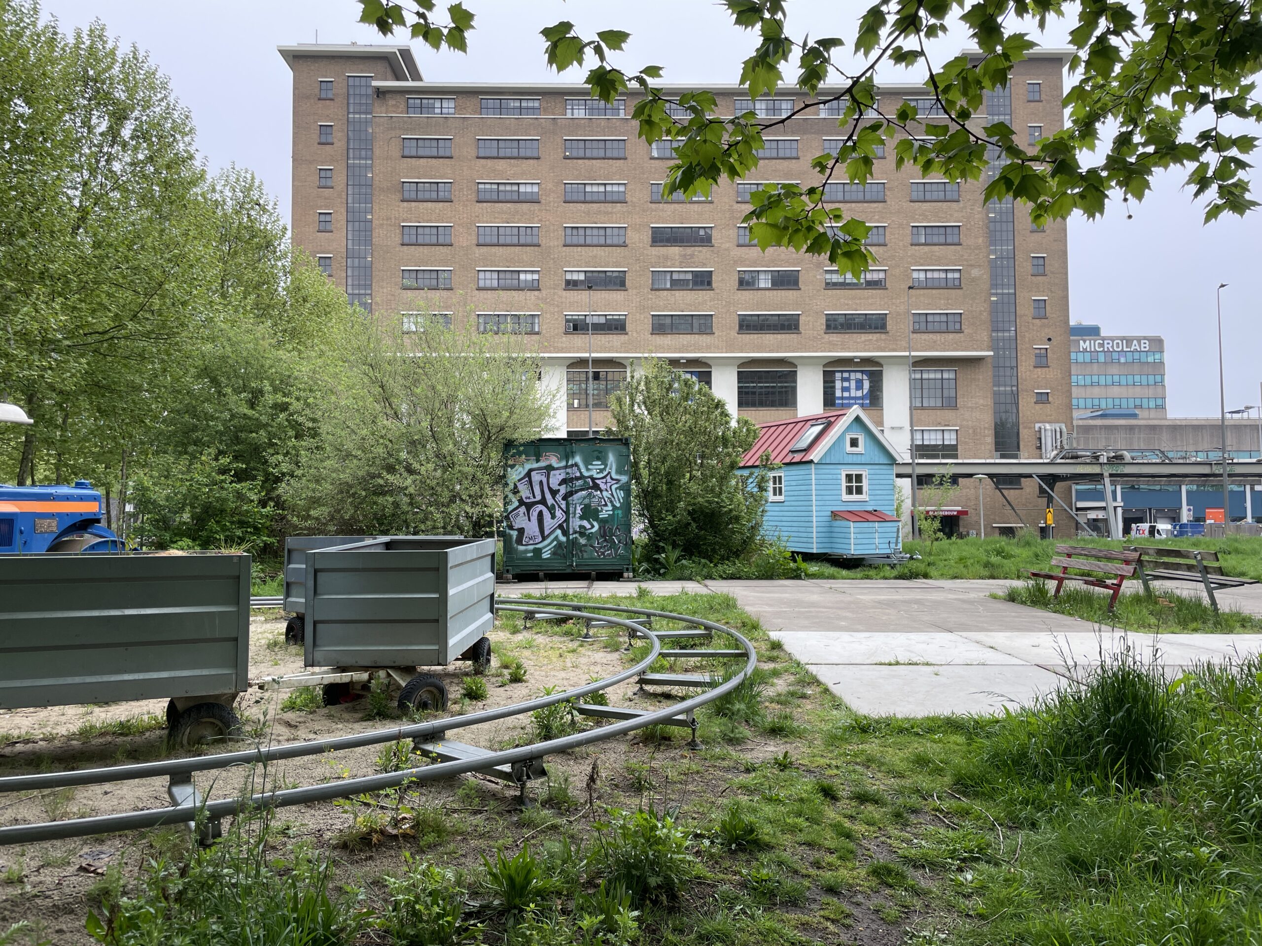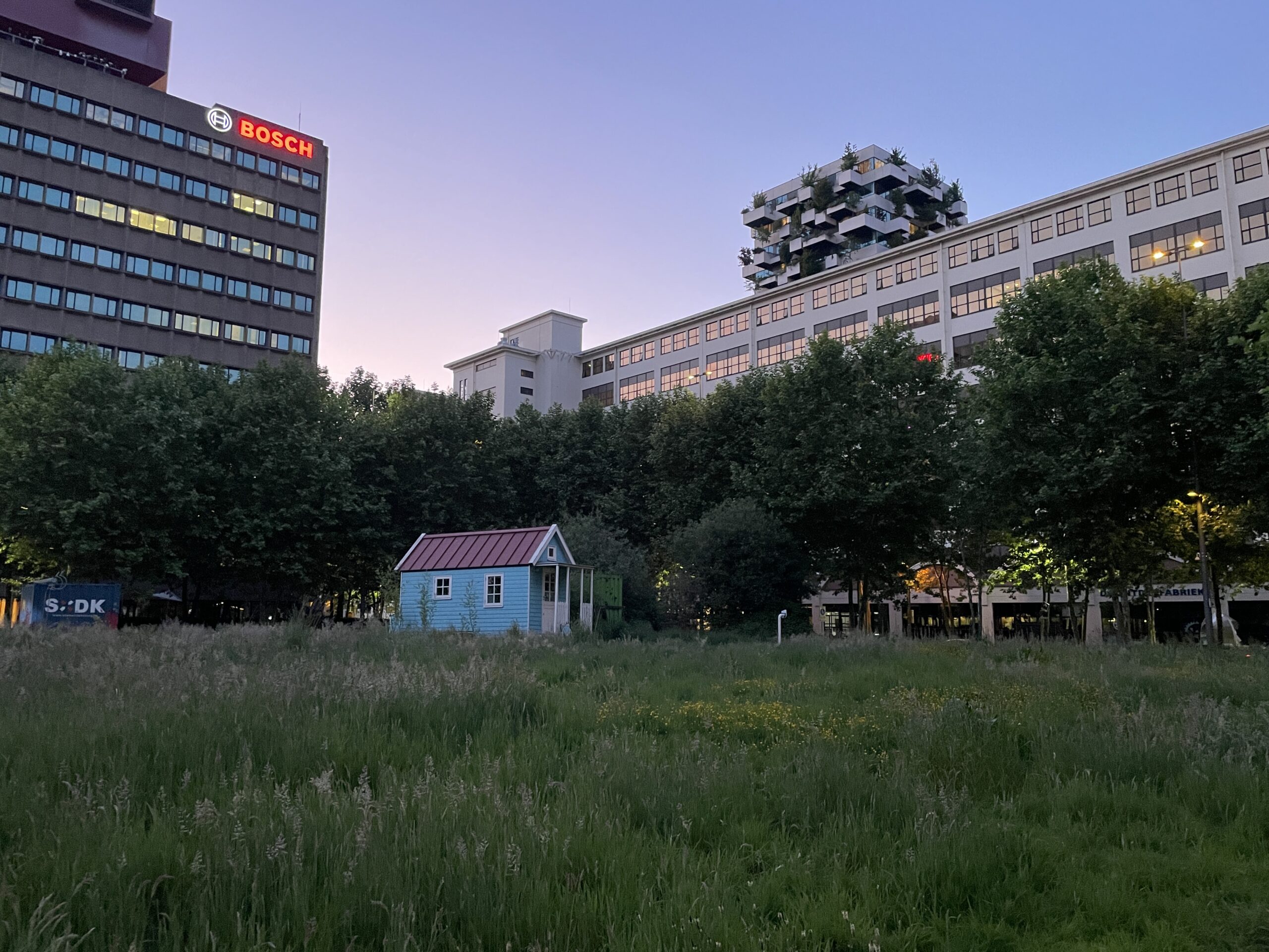 waterland-huisje is verplaatst! Door de aanstaande renovatie van het glasgebouw konden we niet langer op onze vaste plek blijven staan. We zijn neergestreken aan de andere kant van het Glasgebouw in het grasveld tussen Glasgebouw en Boschgebouw. Een prachtige locatie vinden we zelf.